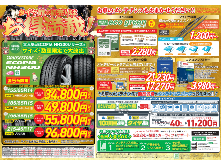 ブリヂストンタイヤをお得に買える!スーパータイヤセール開催!!