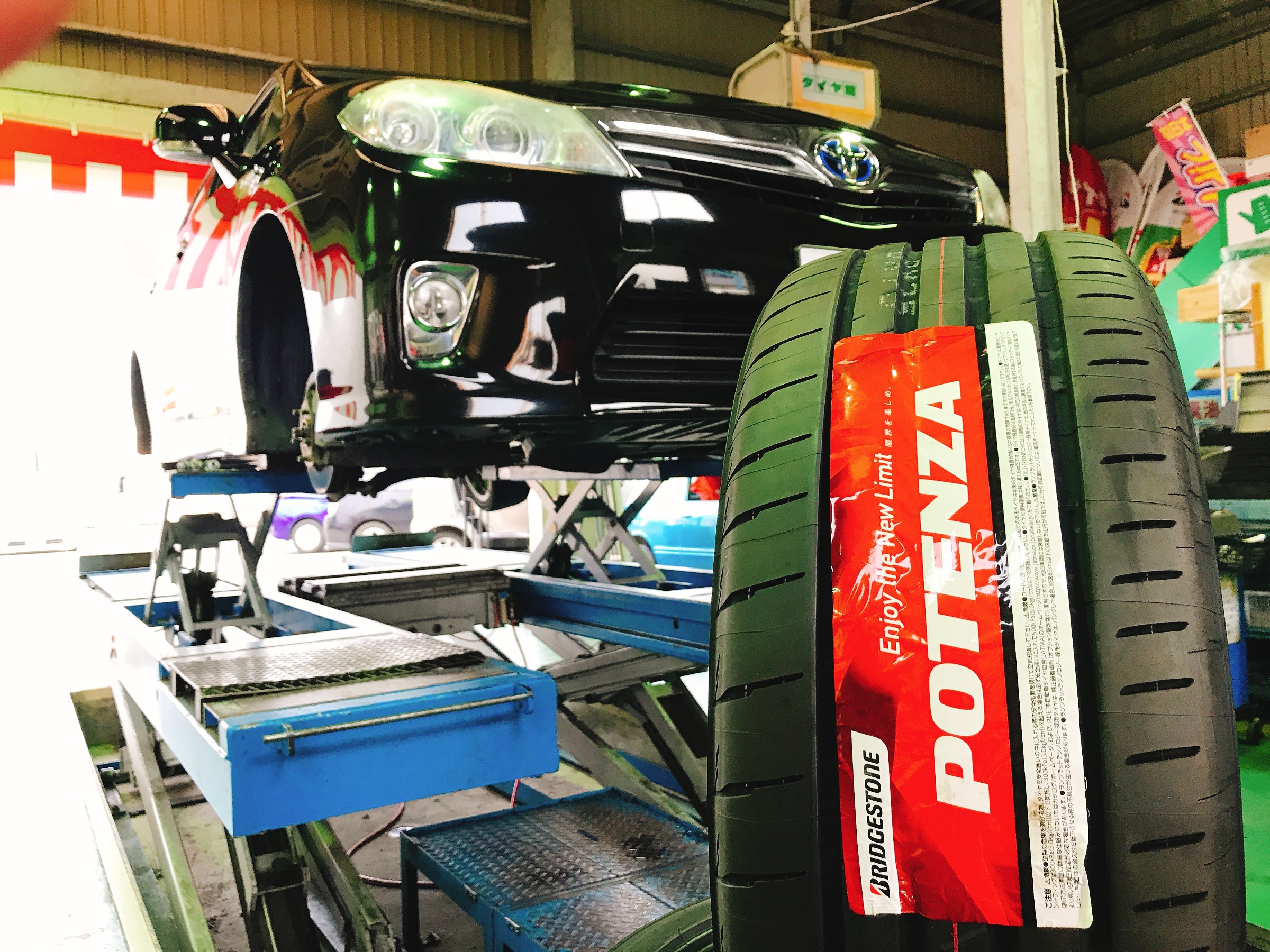 SAIへは新車装着タイヤに純正のPOTENZAが装着されているんです。