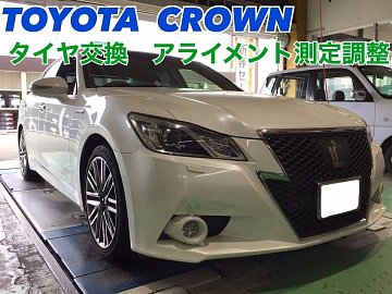 トヨタ クラウン タイヤ交換 アライメント測定調整。