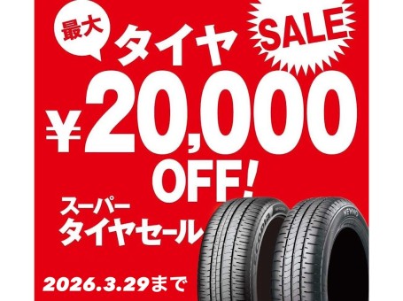 ☆タイヤスーパーセール☆タイヤ4本ご購入で最大¥20,000引き!!カーメンテナンスも10%OFF!!