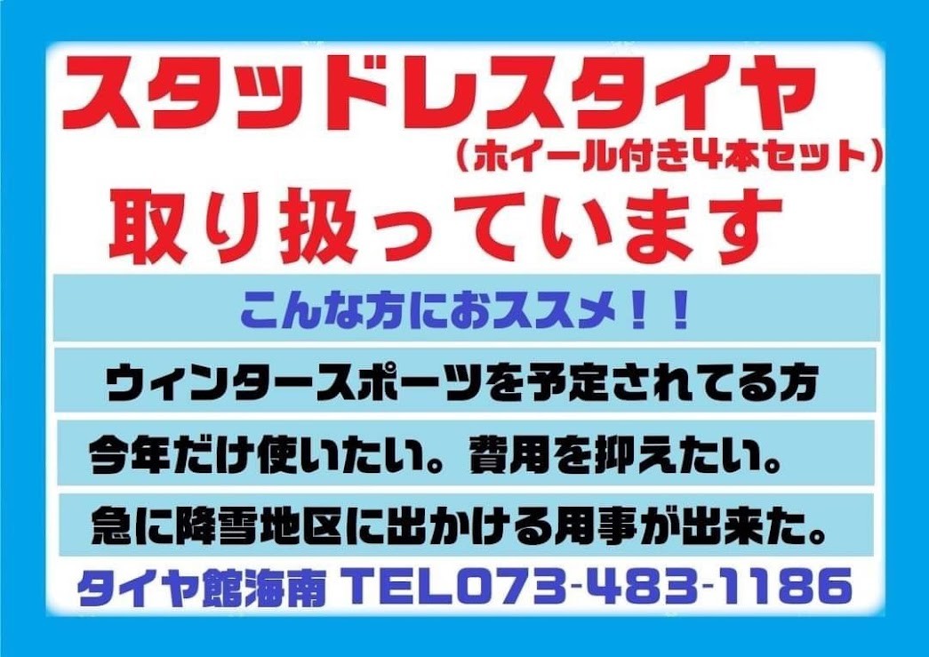 スタッドレスタイヤのレンタル取り扱っております!