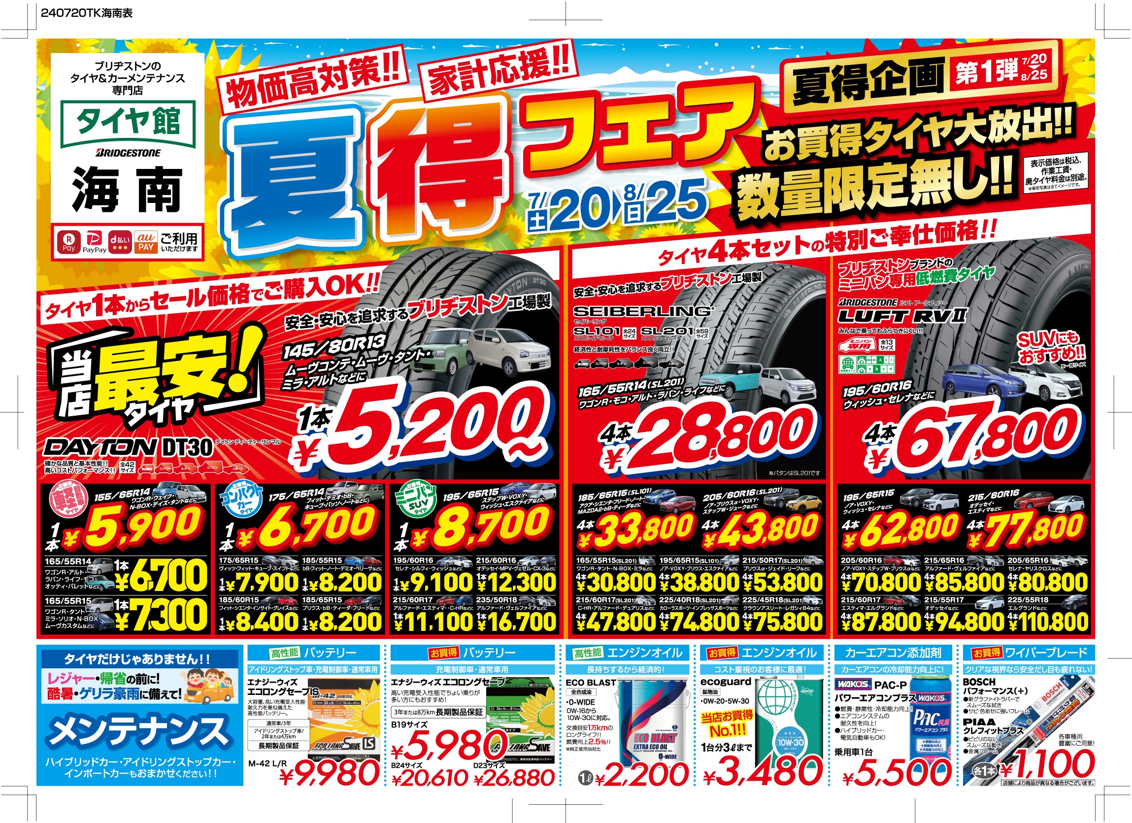 夏得フェア開催!熱いセールで他店徹底対抗!タイヤがお買い得☆