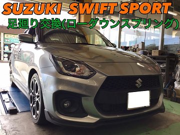 スズキ スイフトスポーツ 足回り交換(ダウンサススプリング) アライメント調整。