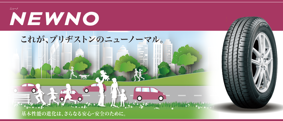 NEWNO(ニューノ)は、従来品のネクストリーに比べて ◎ 雨の日の安全性能が進化 接地形状の適正化とシリカ配合ゴムの採用により、 ウェットブレーキ性能が向上→8%短縮 ◎ 高いライフ性能で経済性が向上 ブリヂストンの独⾃技術ULTIMATアルティメット EYEアイ®により、 タイヤパタンと形状を最適化。 ...