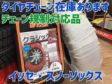 いつもご覧いただきありがとうございます。今回はタイヤチェーンのご紹介です。 お出かけ先での凍結など、もしもの時の為に準備しておきませんか?在庫している商品はイッセ・スノーソックスという布製のタイヤチェーンになります。軽量・コンパクトなのでトランクに入れておいても、かさばりません...
