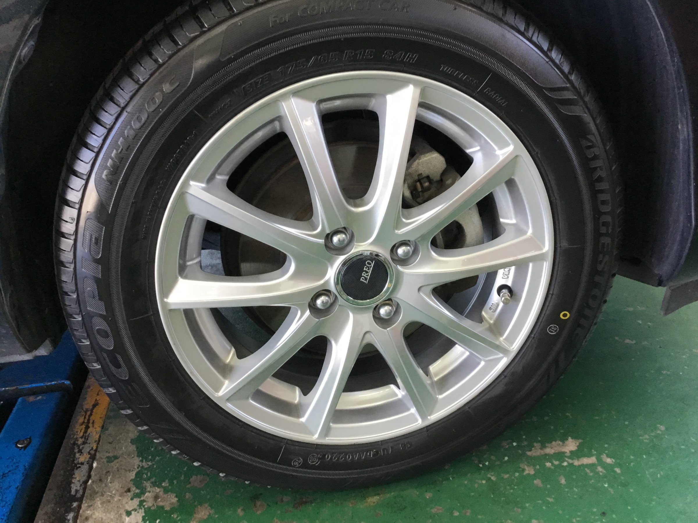 ブリヂストンPREO 15インチのアルミホイールとセットさせていただきました。