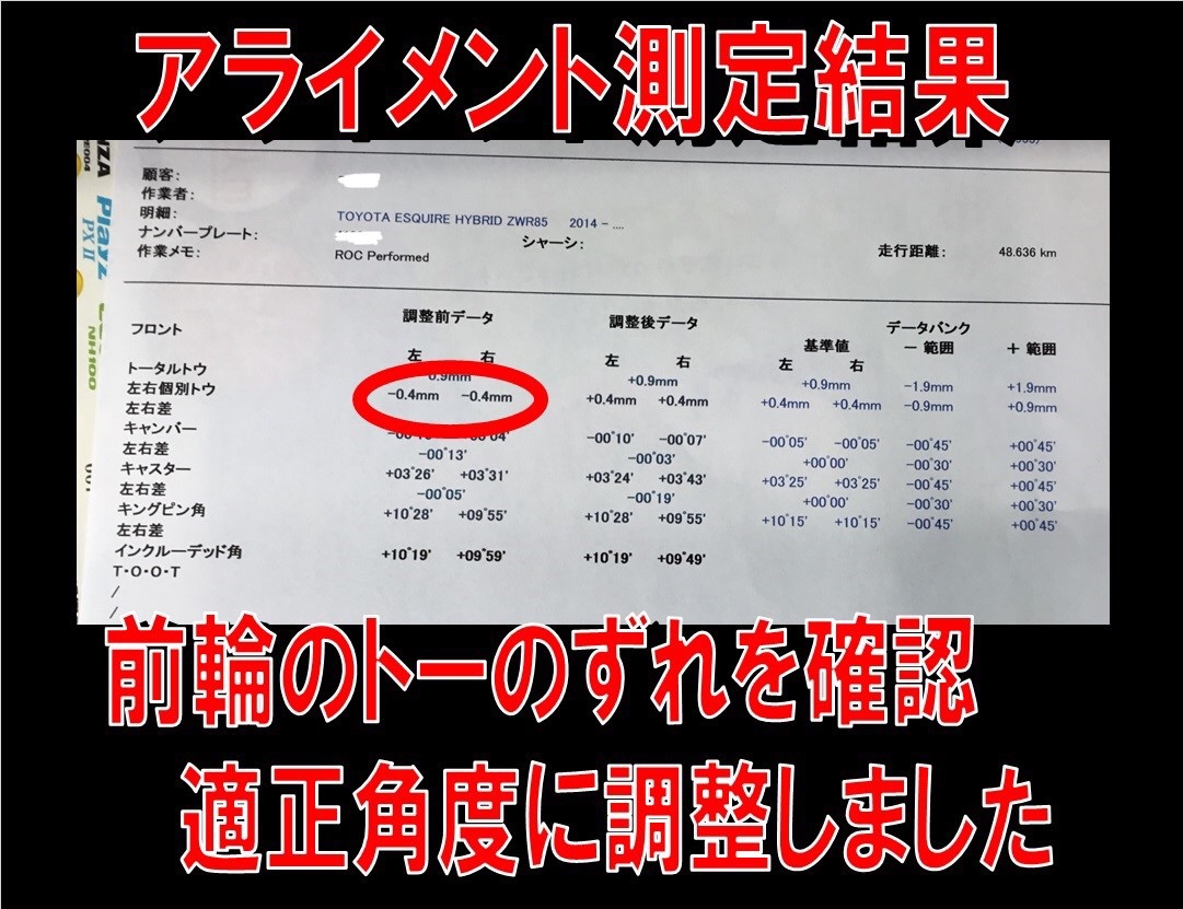 エスクァイア アライメント長持ちプラン再測定と調整しました