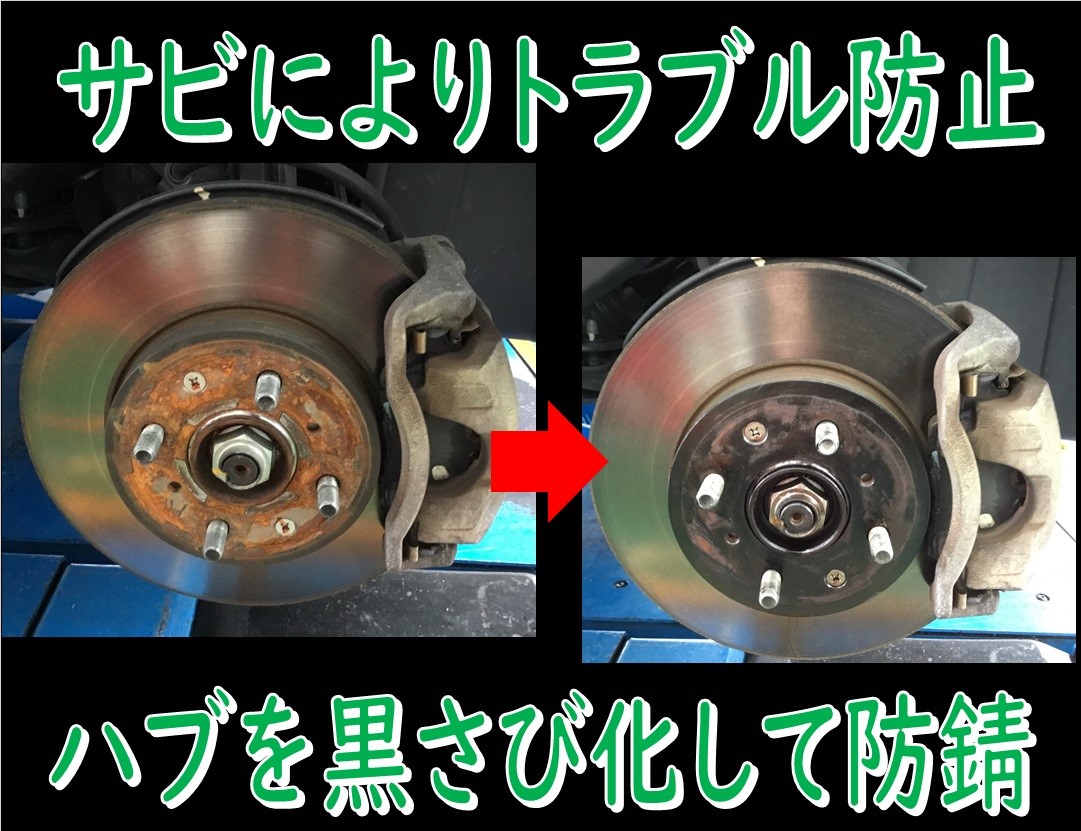 サビによる固着トラブルを防ぐためハブを黒さび化