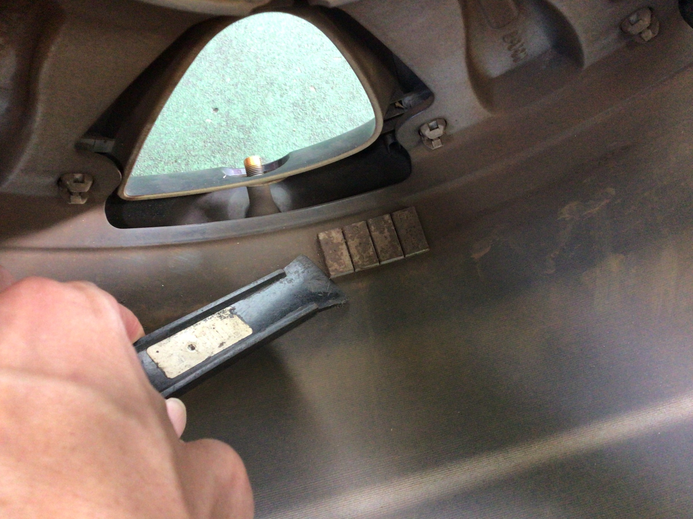 古いウェイトをはがします。