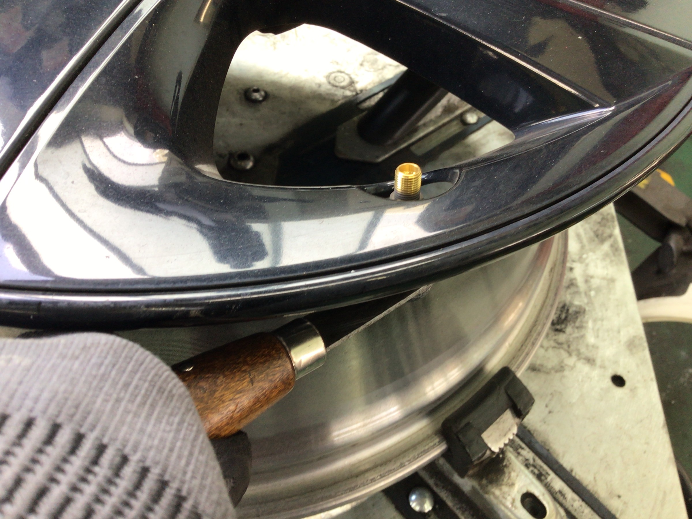 タイヤをバラしたら空気を入れるチューブレスバルブ交換します。