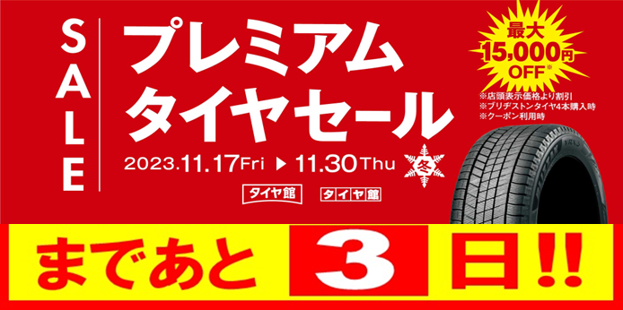 ☆冬のプレミアムタイヤセール☆まであと3日!