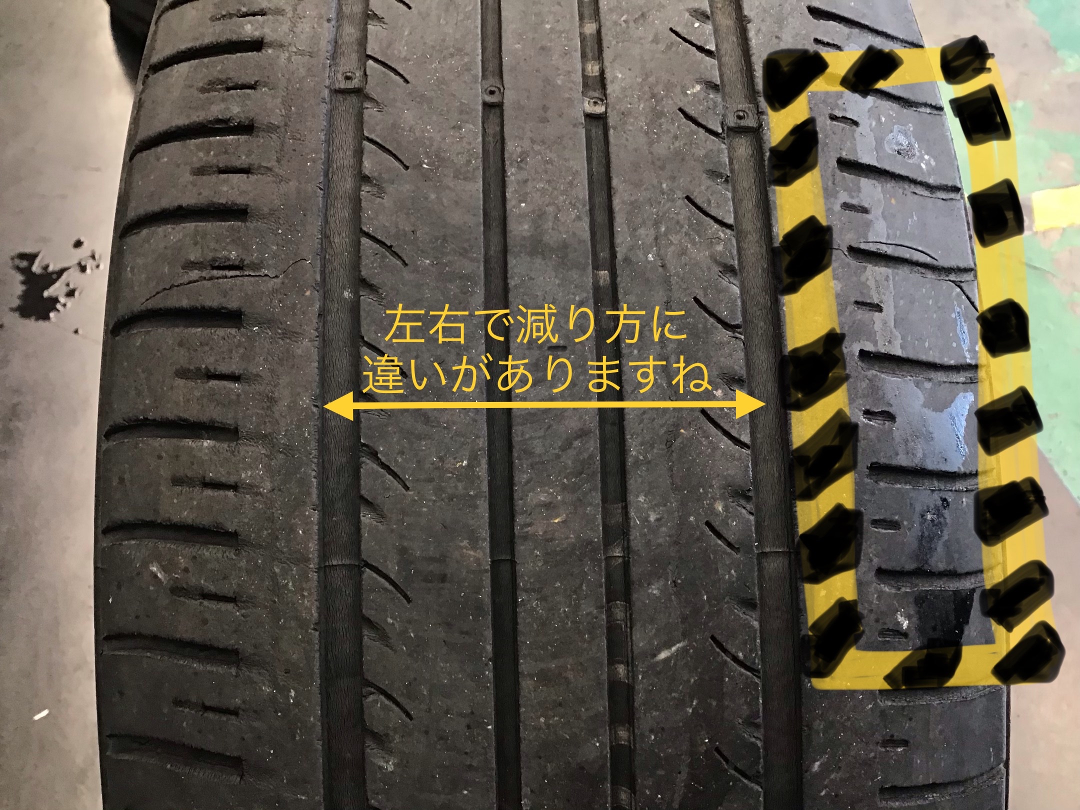 タイヤですが、アライメントの狂いがあれば