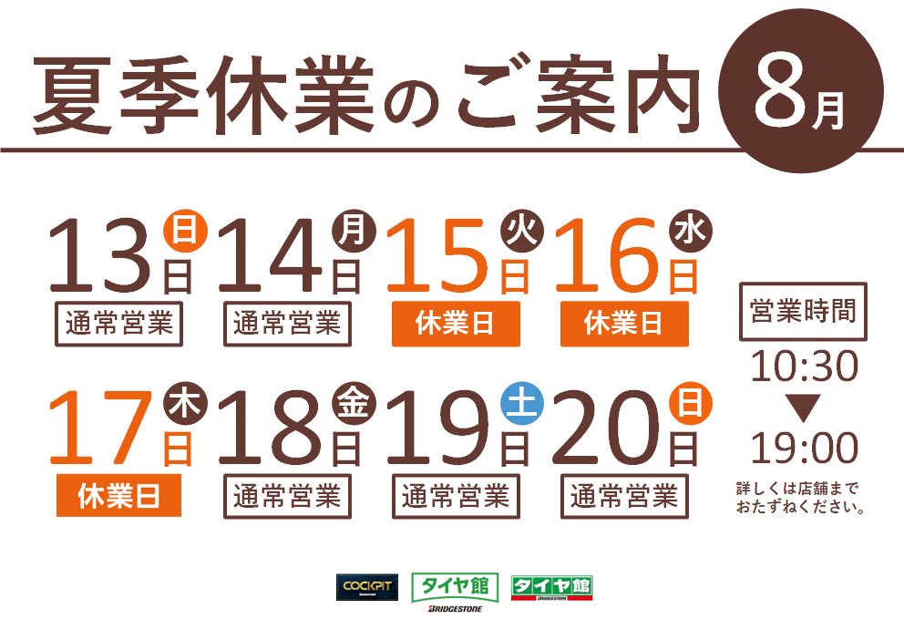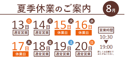 お盆期間の店舗営業日のご案内です!