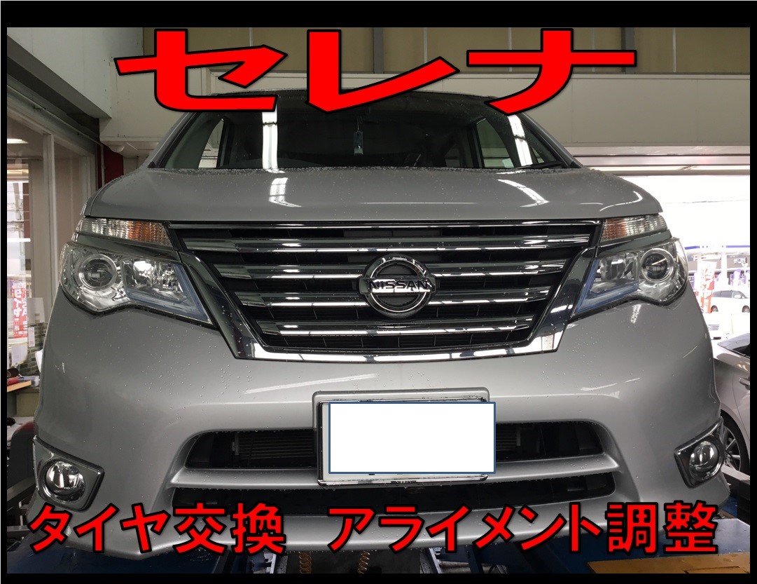 セレナのタイヤ交換アライメント調整を行いました