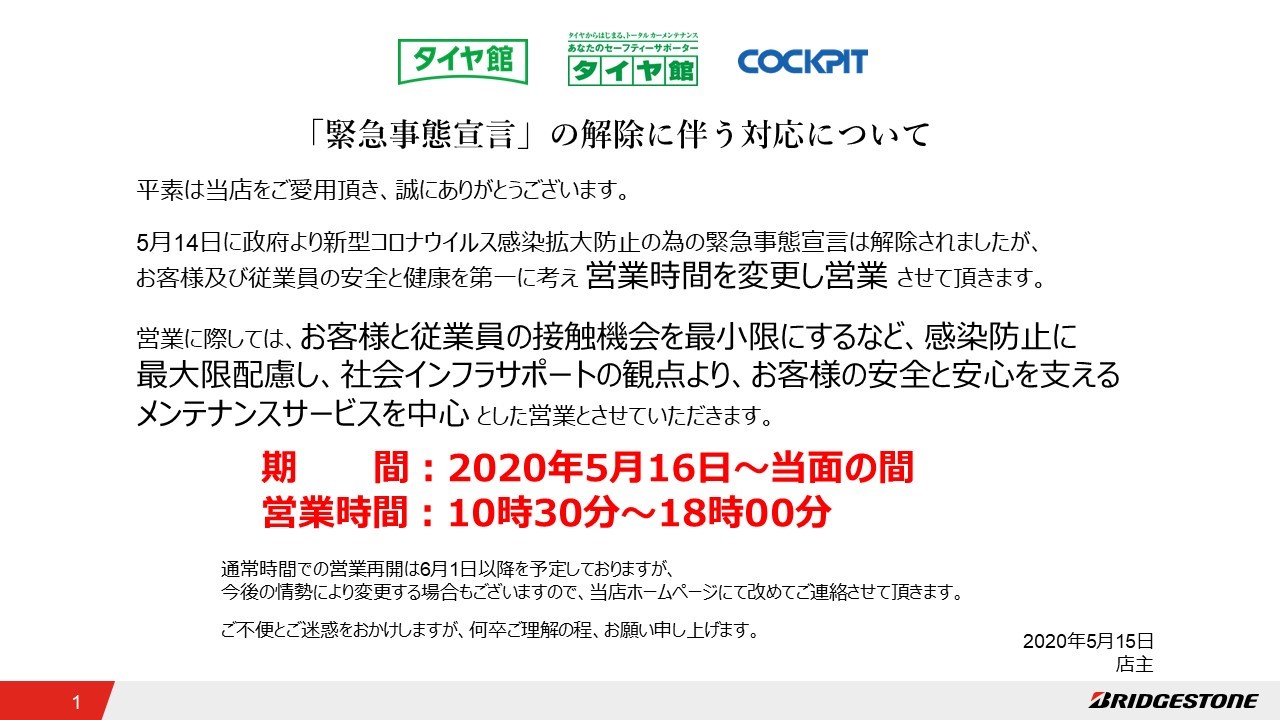 5月14日に緊急事態宣言の解除を受けましたが、今後も新型コロナウイルス感染拡大防止の為