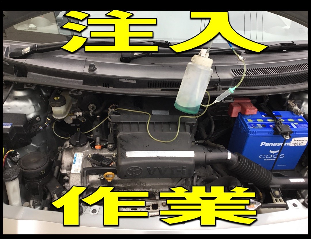 お車に点滴の要領で吸気系に液を注入