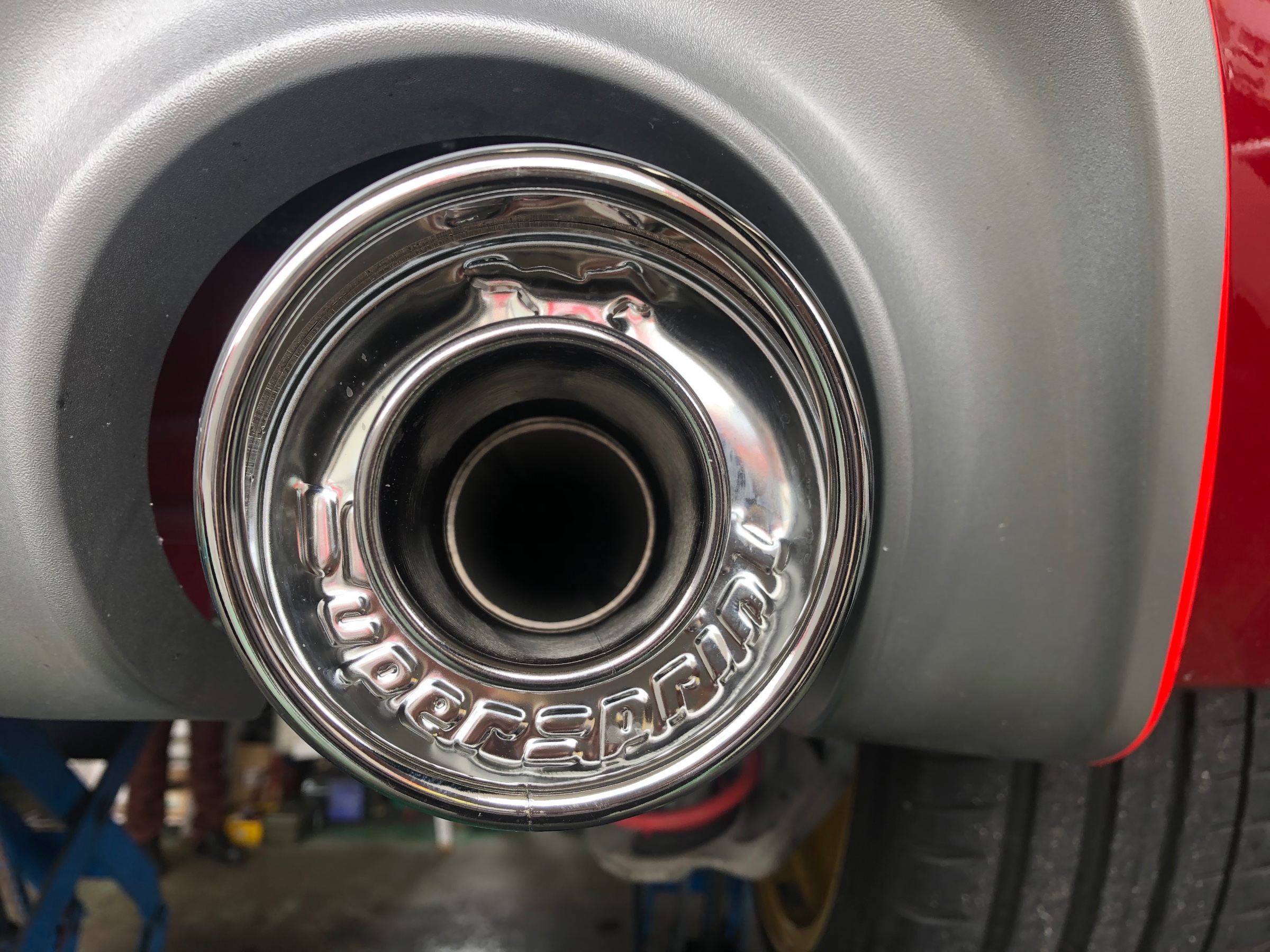 マフラー出口の形状はいくつか選べますが、今回はこちらのロゴが入ったタイプのエンドをチョイスいたしました!(^^)!