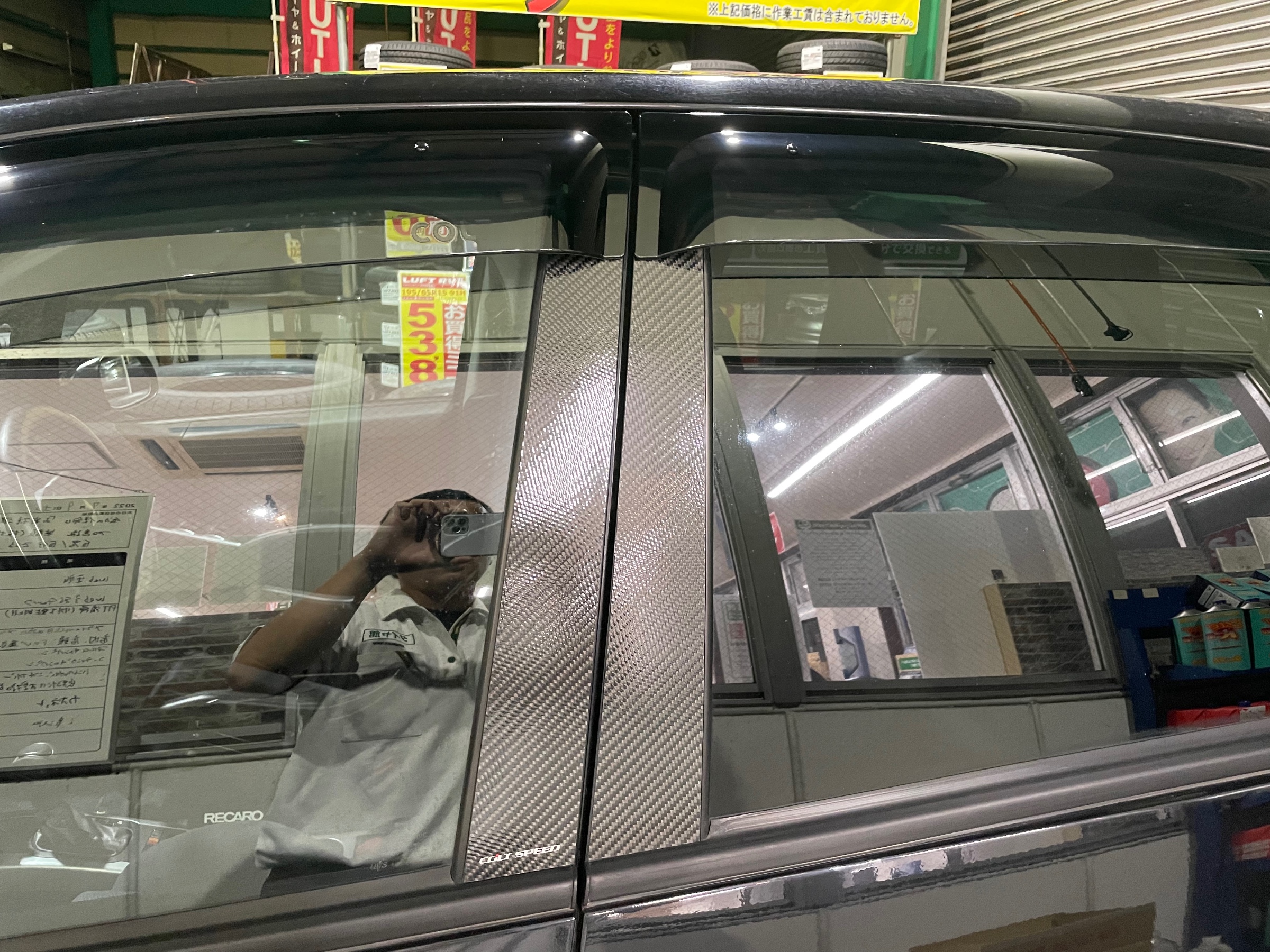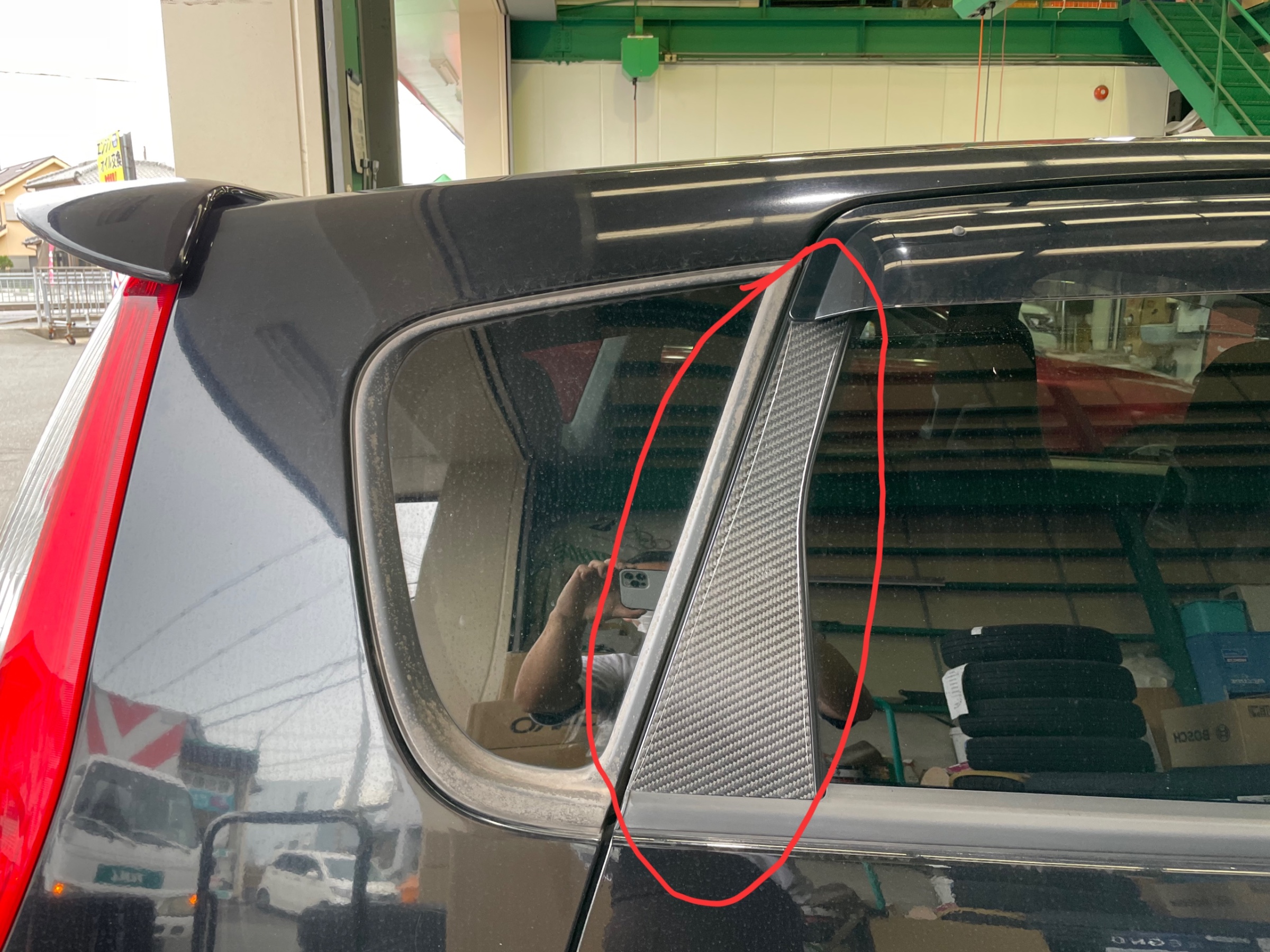 コルトスピードのカーボンピラーカバーも上のクリア?の部分が剥がれてきておりますので、同じ商品を取り寄せし、交換していきます(^_-)-☆
