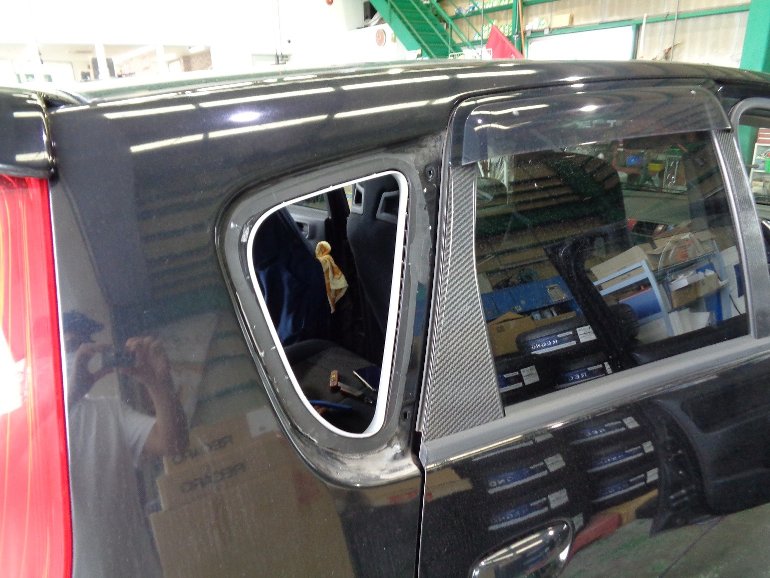 先にモールを外して、その後に窓ガラスをきれいに交換していっております(^^♪