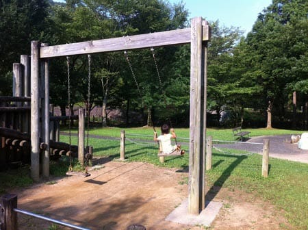 翌朝も朝早くから公園内のブランコを堪能してました。