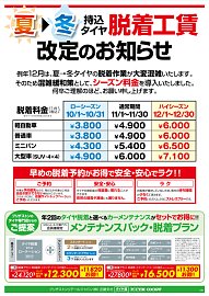 いつもタイヤ館のホームページをご覧いただきありがとうございます! タイヤ館のタイヤお預かりサービス「タイヤクローク」のご案内 スタッドレスタイヤ必要だけど、外した普通のタイヤの置き場所が無い等で スタッドレスタイヤの購入を悩んでいる方も少なくはありません。 そこでおススメなのが「...