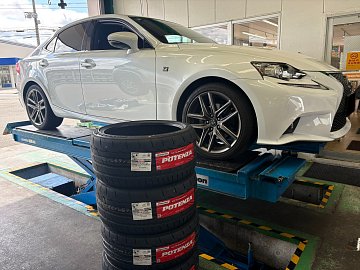 本日は『レクサス IS』のタイヤを交換していきます! 以前は『REGNO』を履いていましたが乗り心地はいいのですがやはり走りを楽しみたい とのことで2月に新発売したばかり『POTENZA Adrenalin RE005』に交換していきます! 『走る歓びをもっと身近に感じられる、カジュアルスポーツPOTENZA』 をコン...