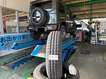 本日は『スズキ ジムニー』のタイヤを交換していきます!! やはり乗りなれたタイヤがいいとのことで新車装着タイヤをご指名でいただきましたので 『DUELER H/T684Ⅱ』に交換していきます!! やはりジムニーにはすこすゴツゴツしたタイヤがお似合いですね! 新車付けのタイヤはメーカーがこだわって...