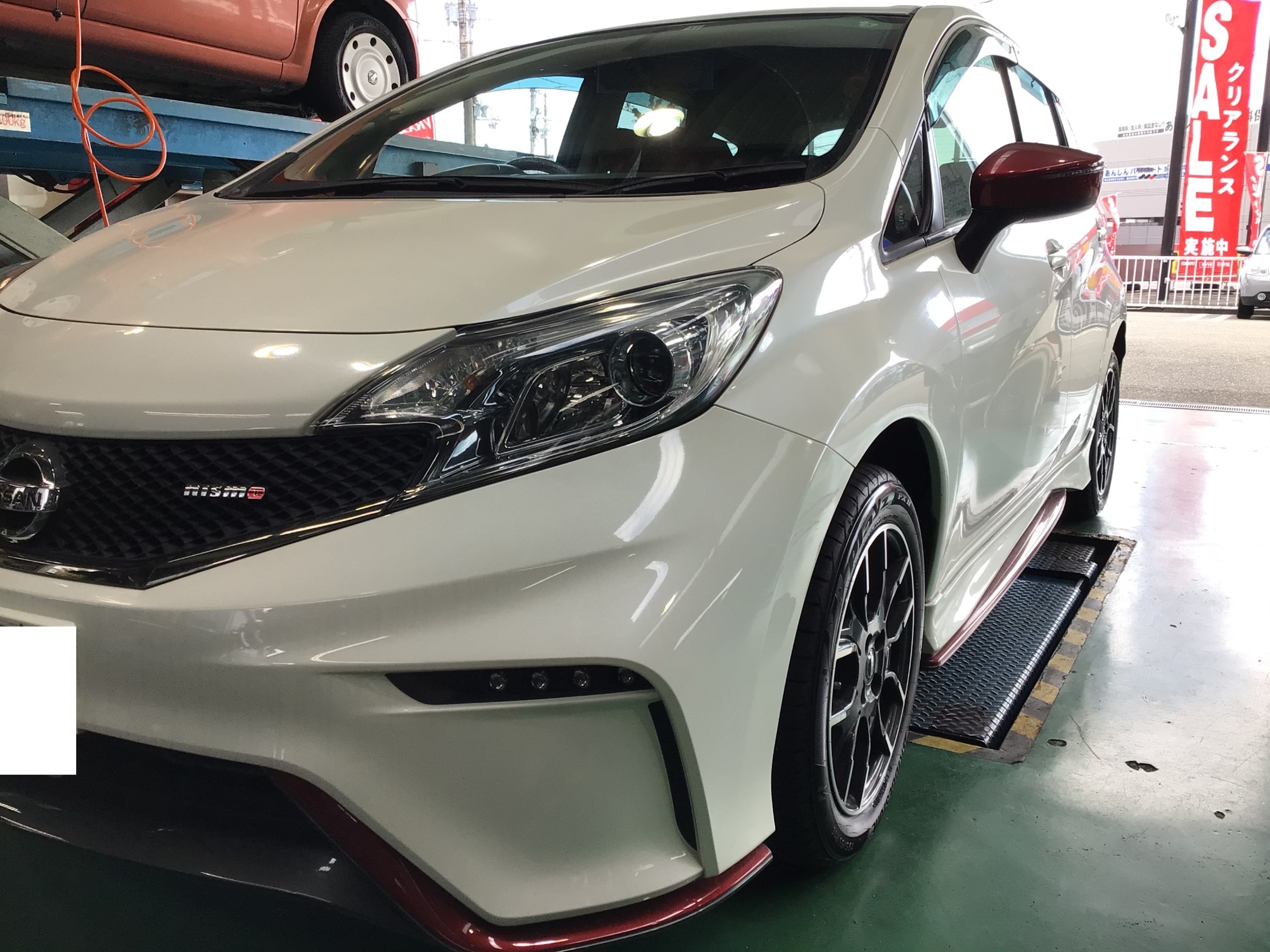 日産 ノート ニスモ タイヤ交換! ポスト 2021年1月30日 本日のタイヤ交換のご紹介! 日産 ノート ニスモに「ブリヂストン プレイズPXⅡ」 を取り付けました。 非対称形状・非対称パタン採用の当店でも非常に人気の シリーズです。 只今クリアランスセール開催中です。本日はお買い上げ ありがとうございました!100km点検でのご感想楽しみに お待ちしております! 関連情報もあわせてご覧ください プレイズについて詳しくはこちら カテゴリ:タイヤ関連 担当:多木
