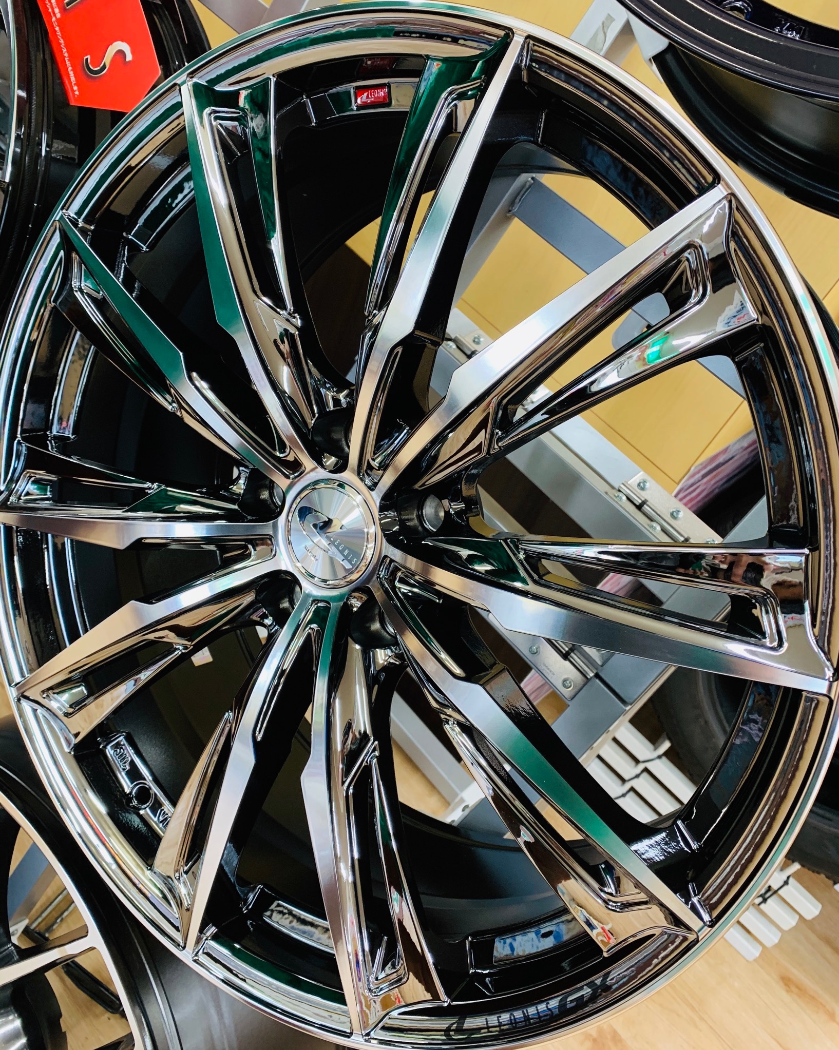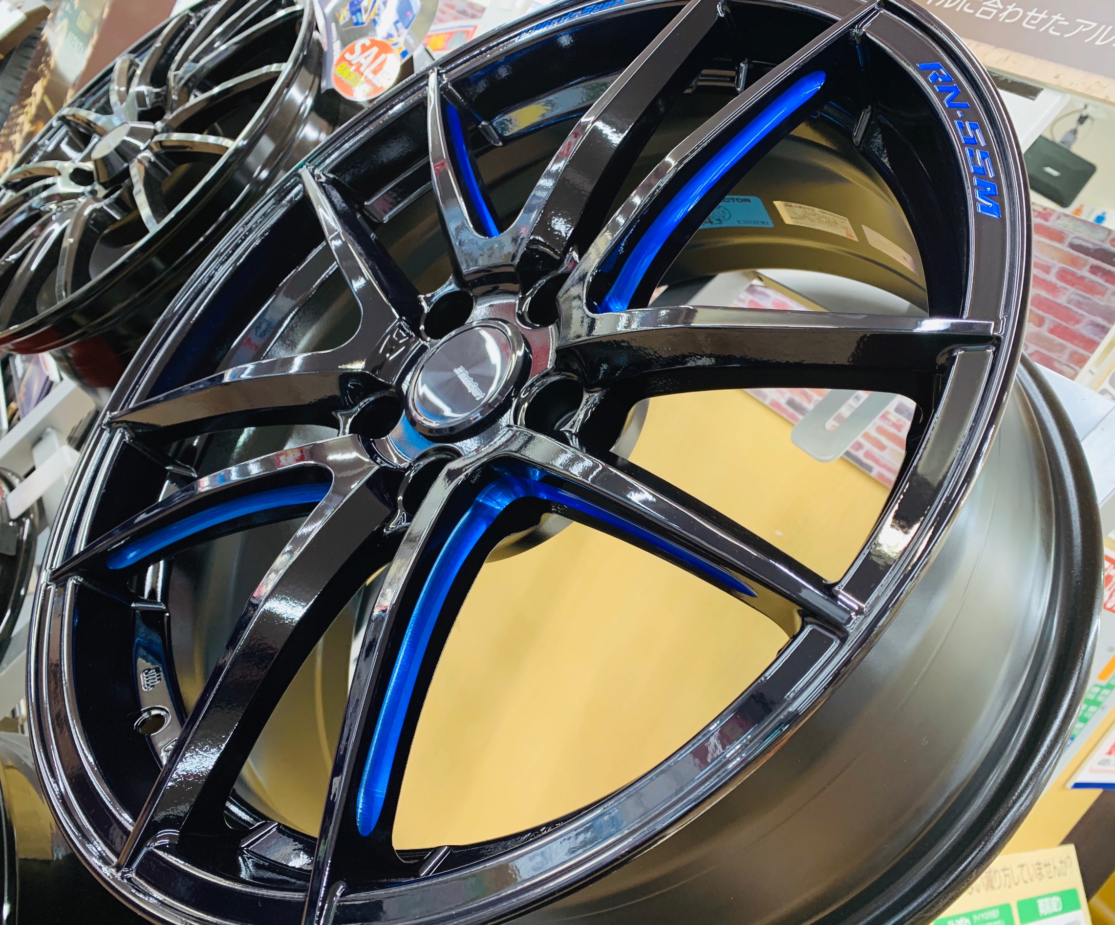 ↑ 実際に人気のアルミホイールを展示しております!!