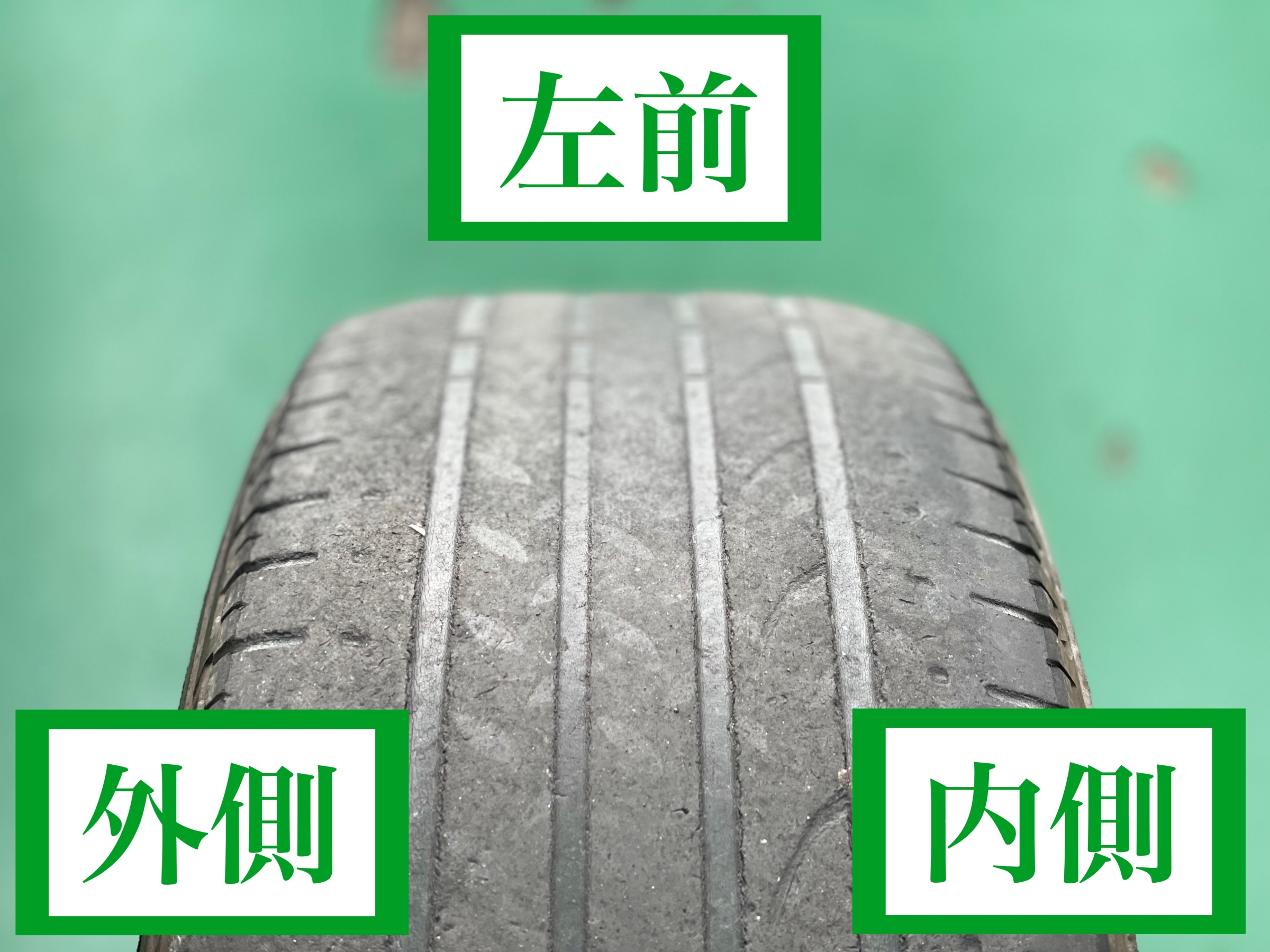 ご使用されていたタイヤを点検させていただくと、残溝が2〜3mm前後でしたので、ご交換させていただきました。