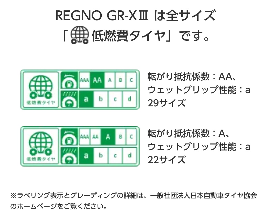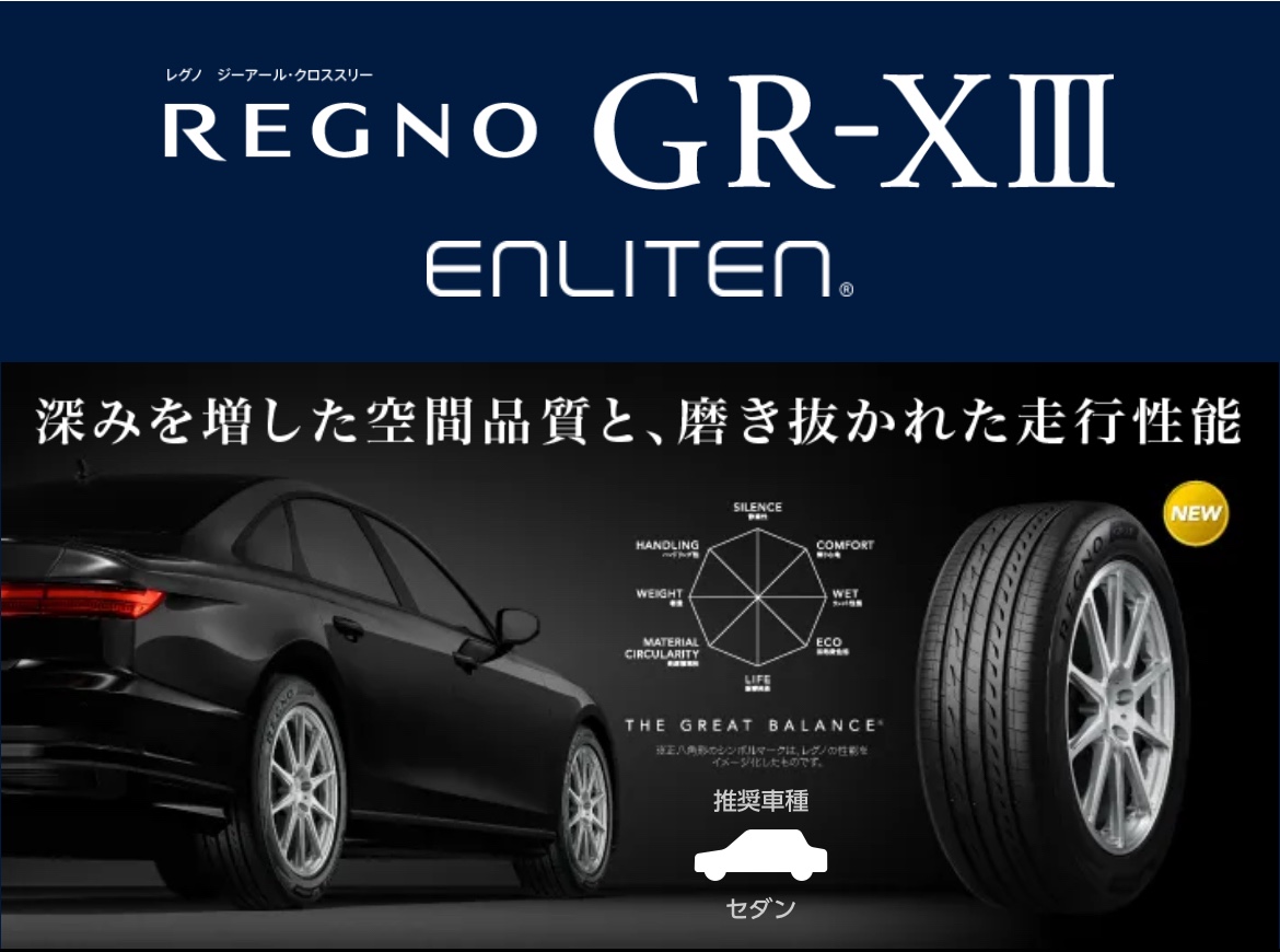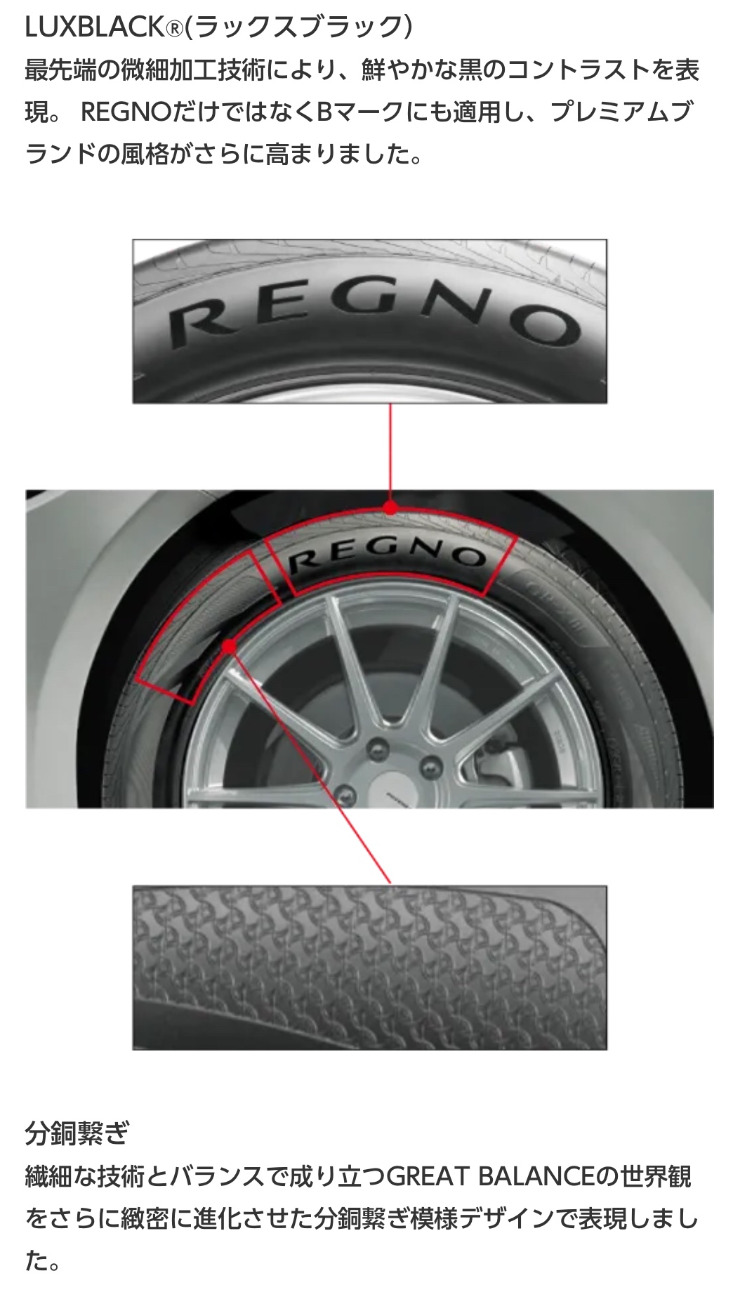 ブリヂストンのタイヤで「REGNO」(レグノ!)