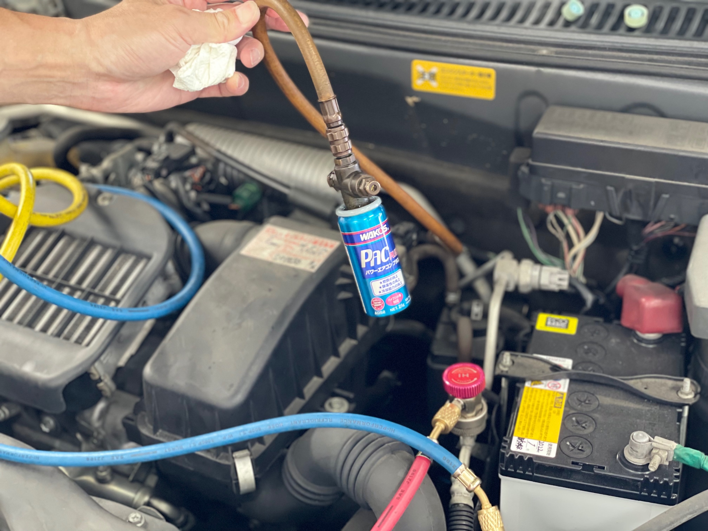 エアコンガスを圧縮するコンプレッサーの潤滑性を向上させ、エアコンのフリクションを軽減し、エアコンの冷房効率を向上させるのが「エアコン添加剤」。燃費悪化とパワーロスも抑えます。