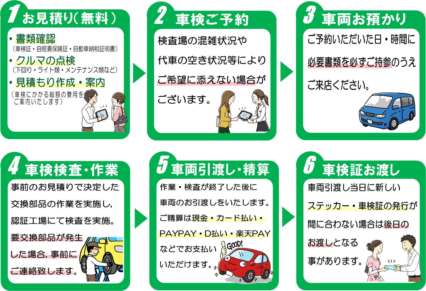 必要書類の確認・お車の点検・お見積りの作成と提案。