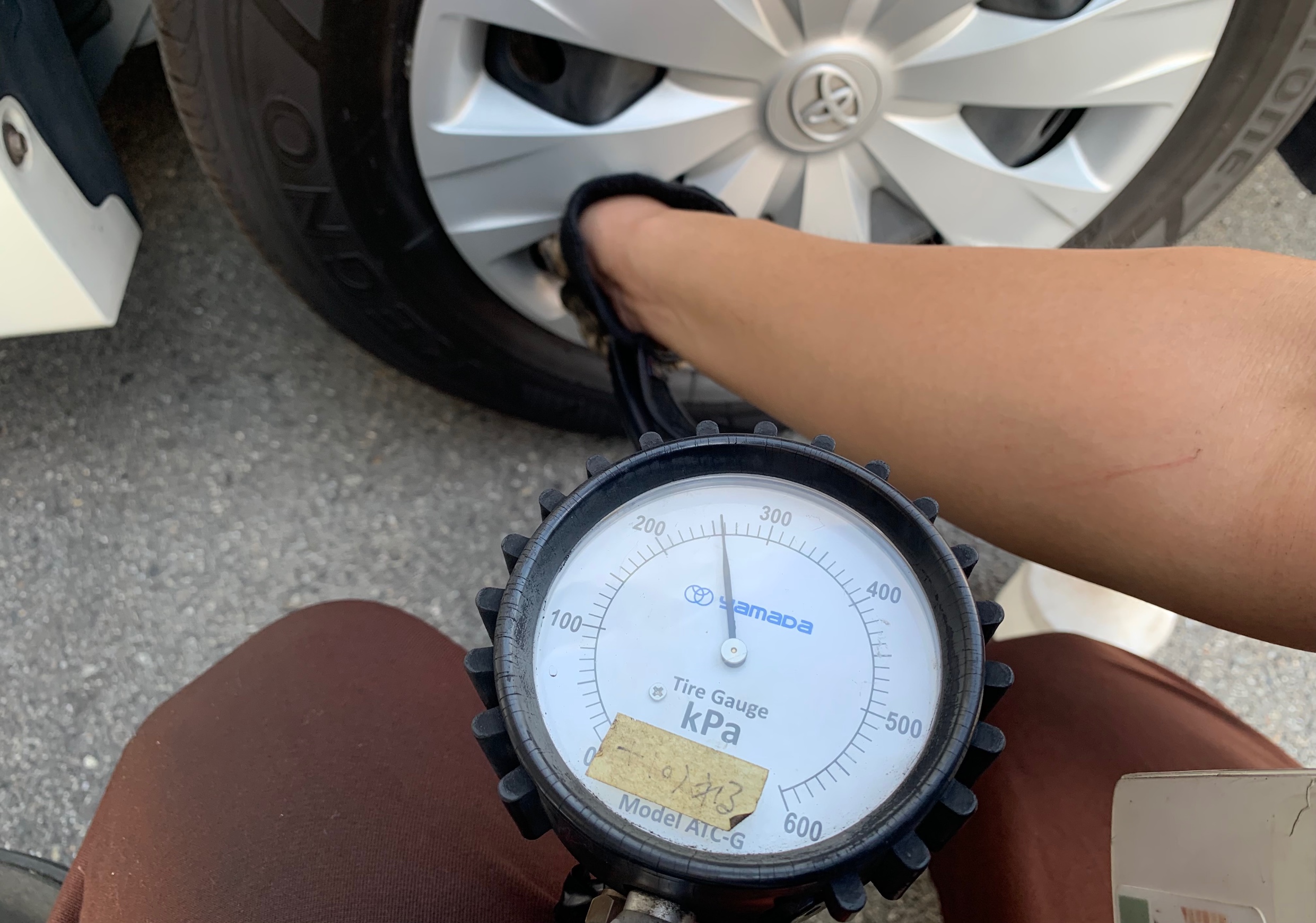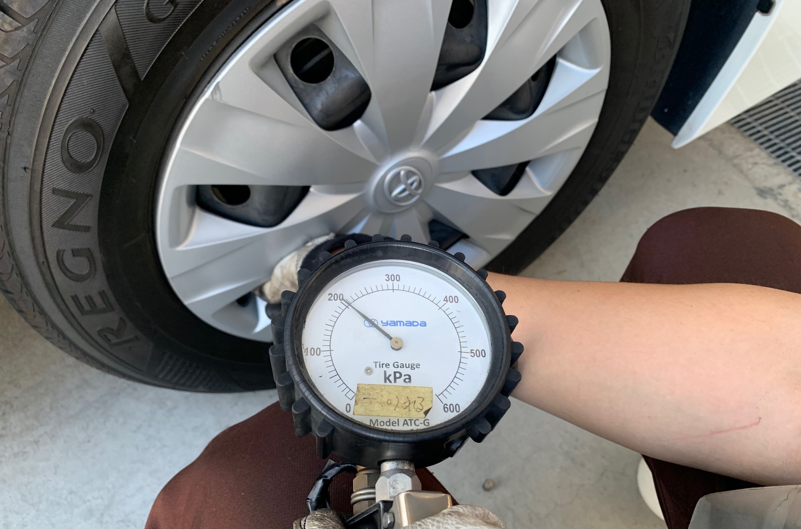 車両規定空気圧又はお客様ご希望空気圧へと空気圧補充を行います。