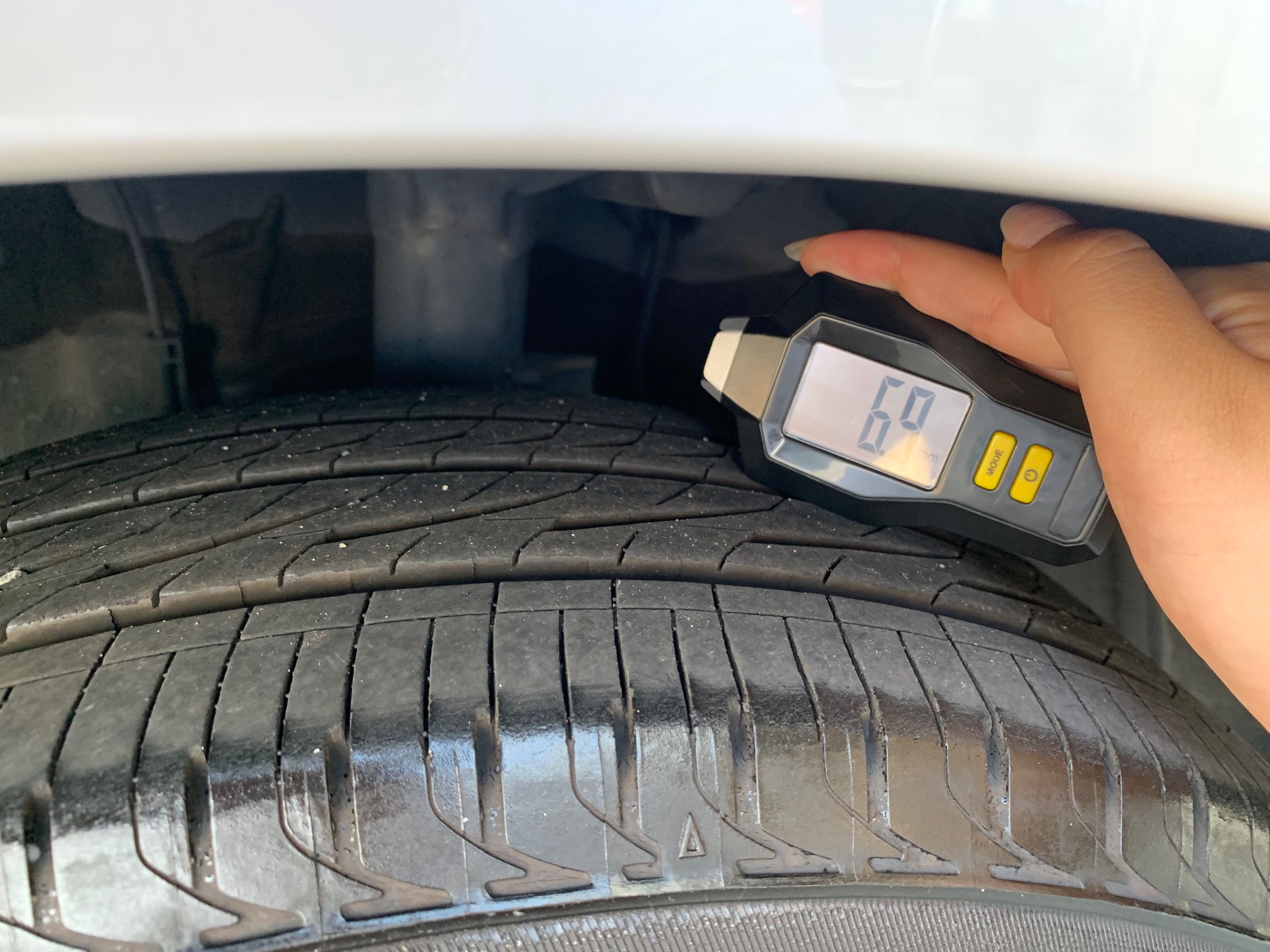 測定器を使い、タイヤの3溝(内側・中央・外側)を測定