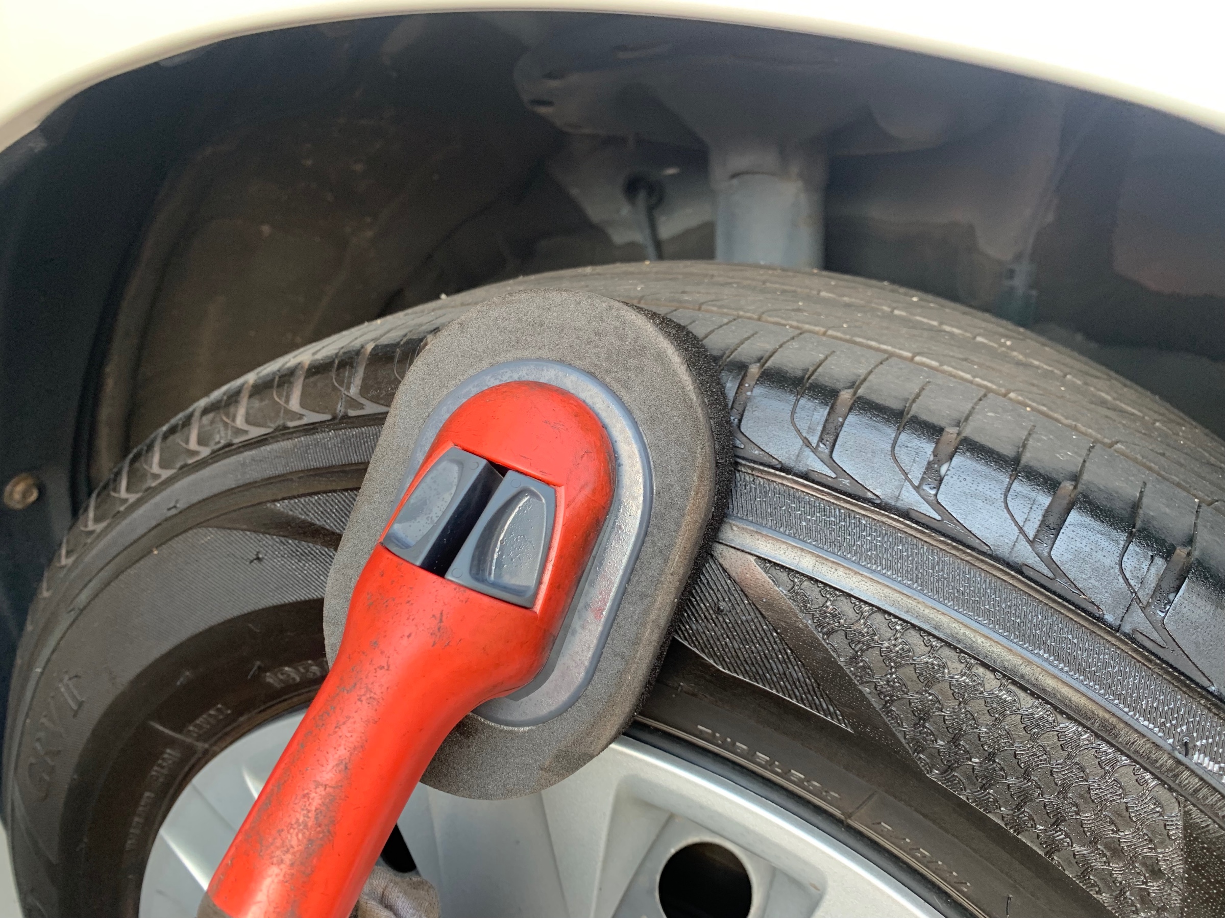 ↑仕上げにブリヂストン純正タイヤワックスでツヤ出しを行います