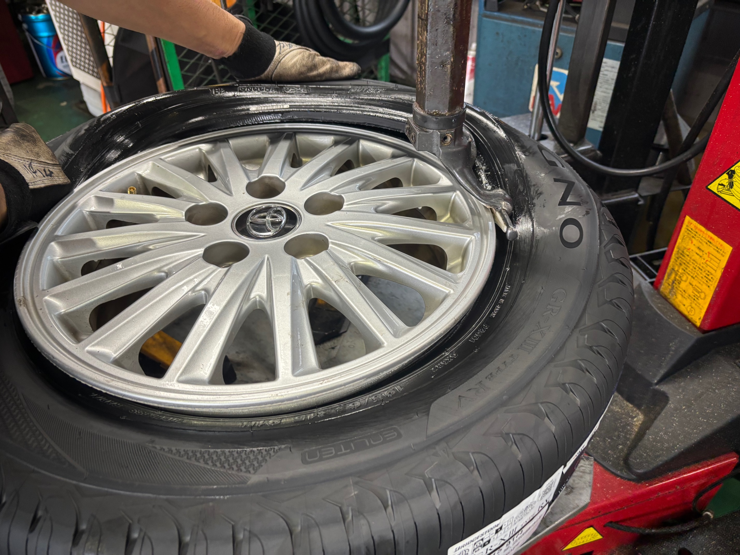 新しいタイヤを組んでいきます。