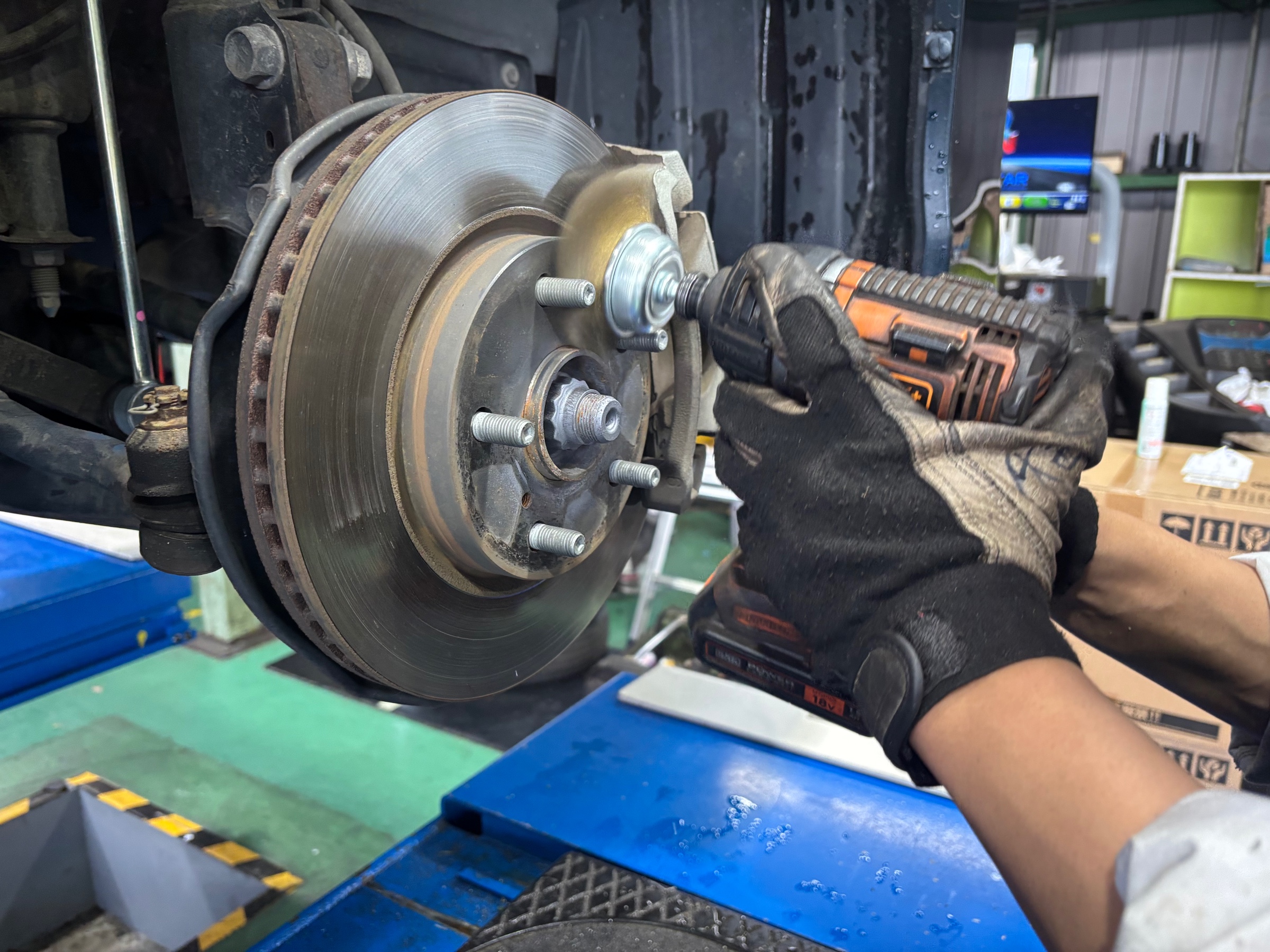 タイヤをお取り付けし、アライメントの調整も