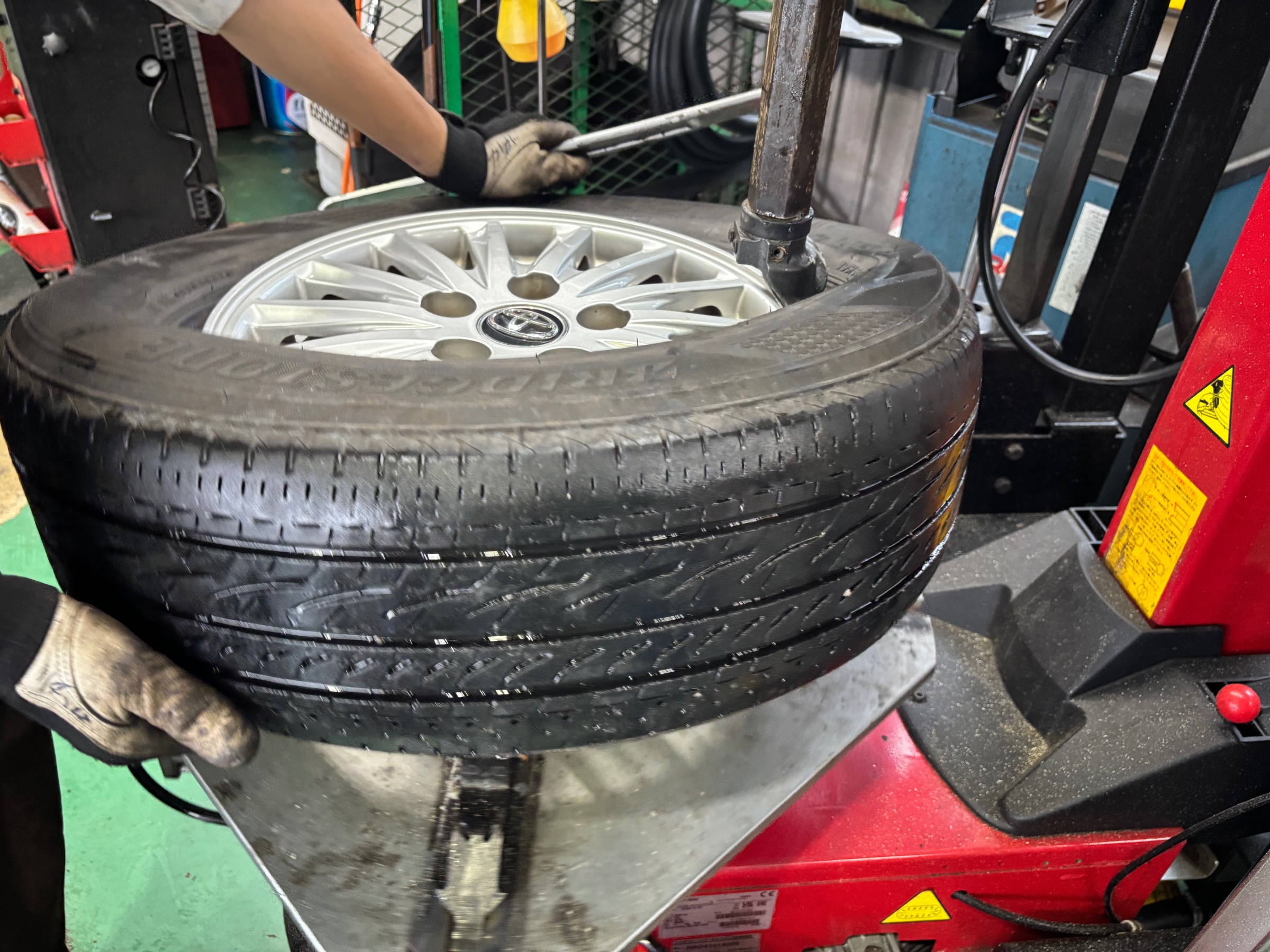 タイヤをバラしていきます。