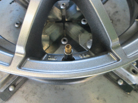 ホイールの “チューブレスバルブ” の代わりに “センサー” をホイールに取付させてもらいます(^^)/ (写真2枚目)