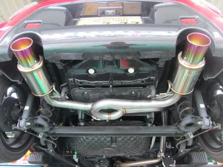 赤いクルマにバッチリのマフラーをチョイス頂きました。