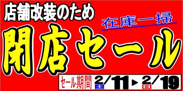 ☆『店舗改装のため、在庫徹底処分!“閉店セール”開催致します!』☆