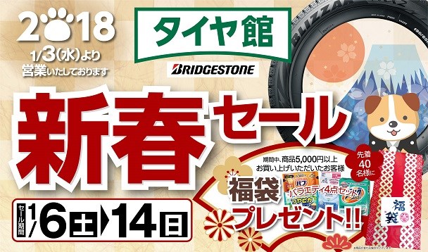 ☆新春セール☆ 明日からです! ポスト 2018年1月5日 あけましておめでとうございます! 2018年もよろしくお願いします! さて、2018年も明けたばかりですが 明日から☆新春セール☆開催します! 期間は1月14日(日)まで! 冬の必需品スタッドレスタイヤをはじめ、 オイルやバッテリーなどのメンテナンス等もお買い得です! さらに先着40名様限定で、 5000円以上お買い上げの方に 福袋をプレゼント! お得がたくさんの タイヤ館 加古川の新春セールを 宜しくお願いします!