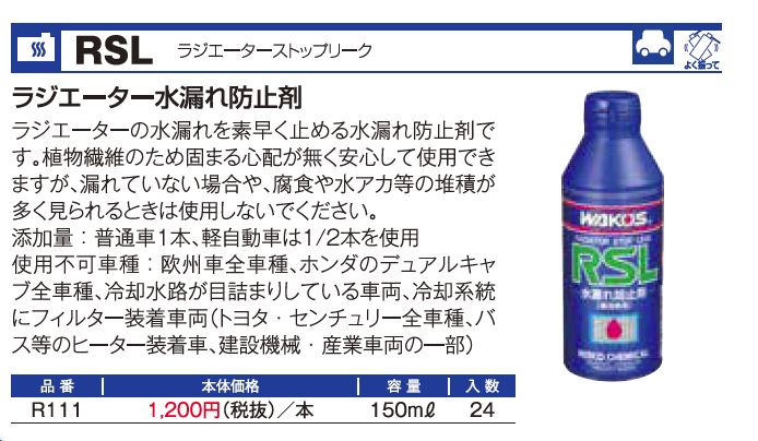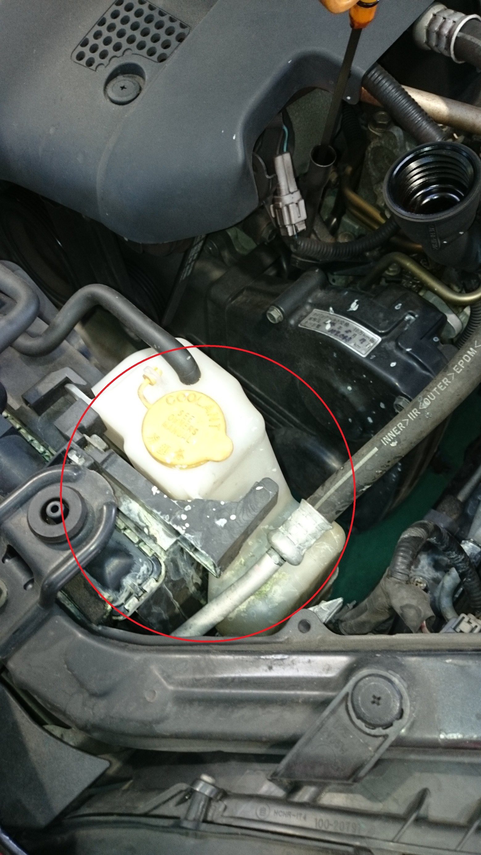 冷却水(ラジエタクーラント液)の補充とラジエタのもれどめ剤の注入です。