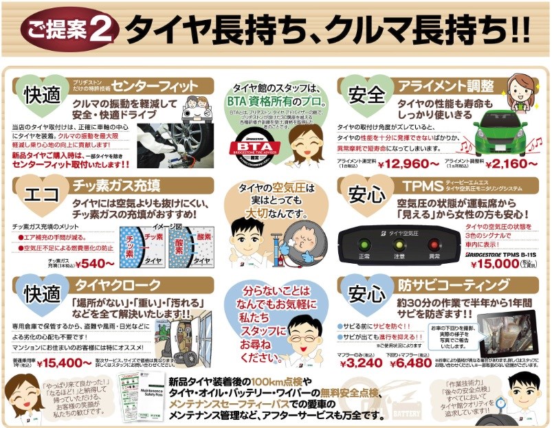 ●お客様の安全・安心・タイヤ長持ちを考えたタイヤ選び