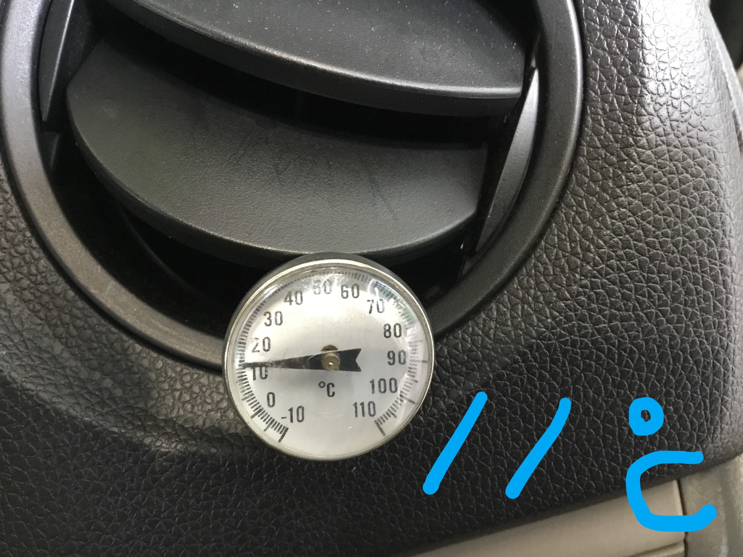 たびたびメンテナンスさせていただいているお車なので、現状でも11℃の冷えた風が出ています!