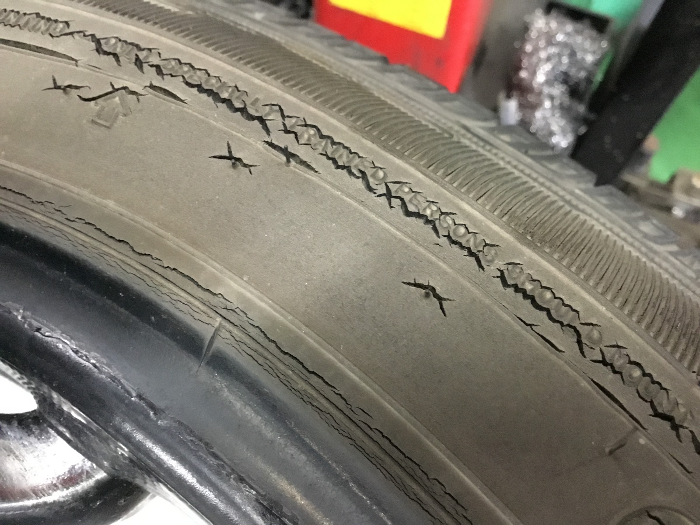 今まで使用していたタイヤは、この通りヒビだらけ!!Σ(´・ω・`)