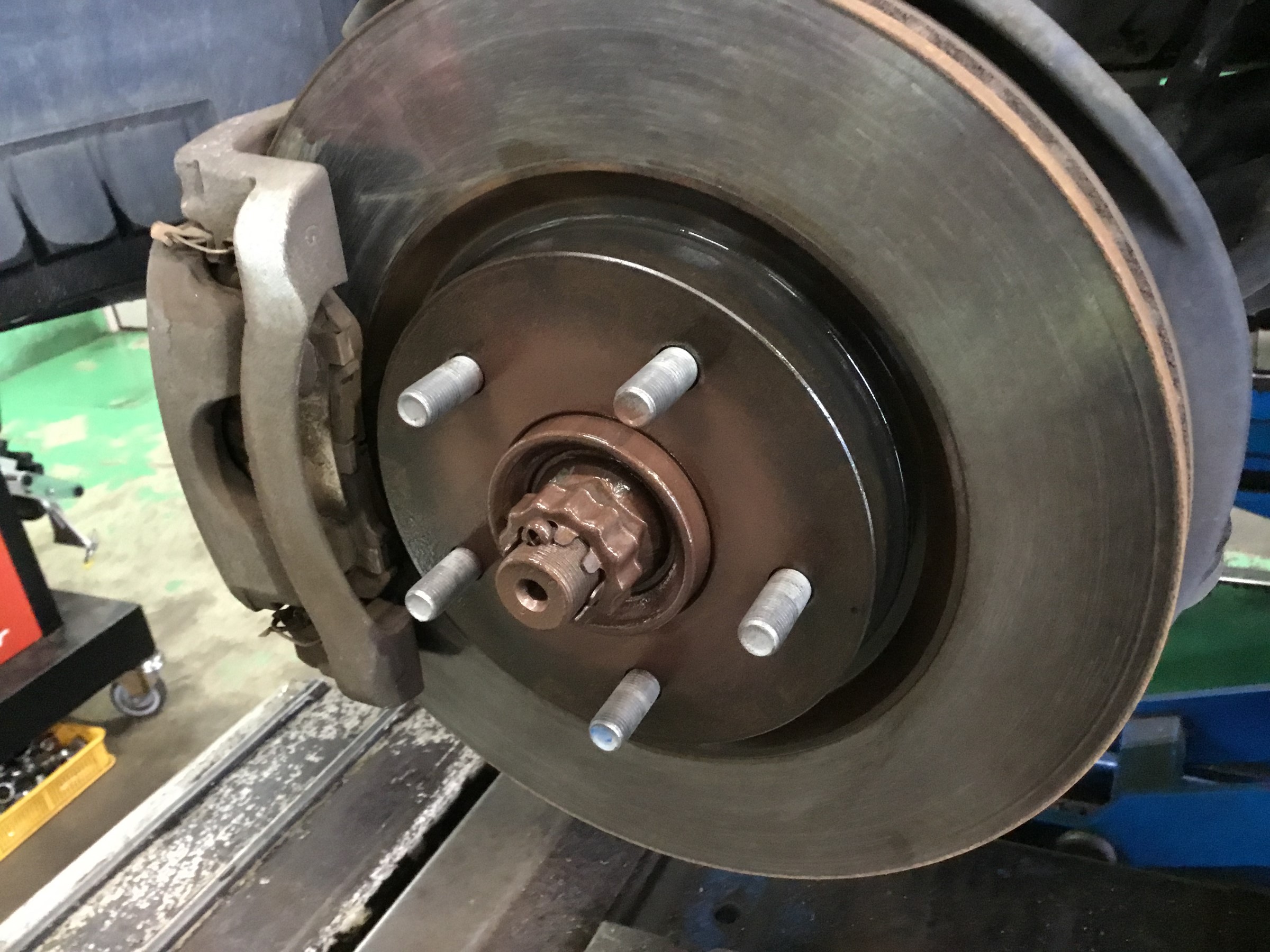 ホイールが装着されるハブにサビがあったので、ブラシで磨いてから防錆コーティング&耐熱グリスで保護しました!