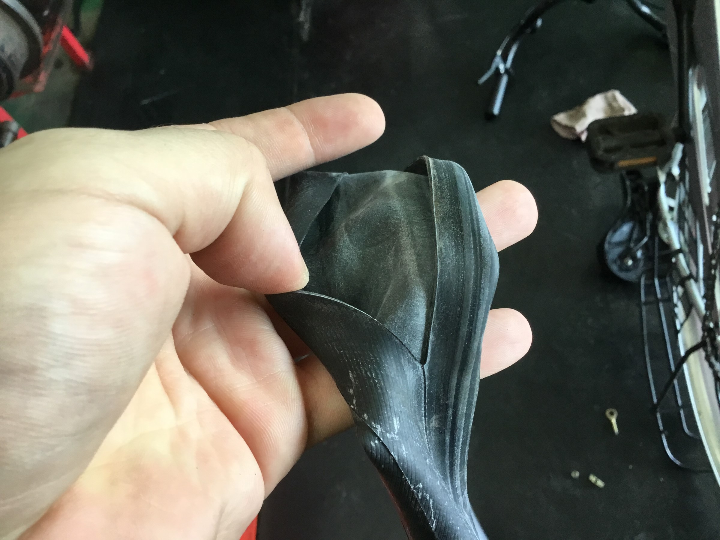 指でつまむだけでぺったんこになるタイヤ・・・。