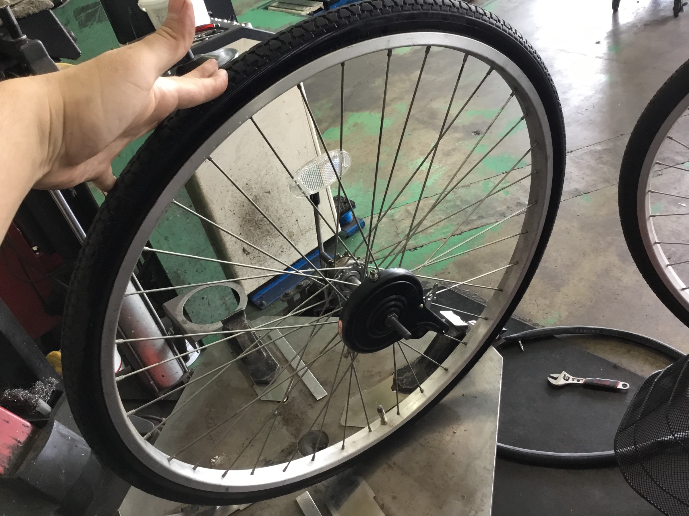 わざわざホイールを外さなくても交換できるのですが、フレームを痛めるのでちゃんと外しました(σ゚∀゚)σ
